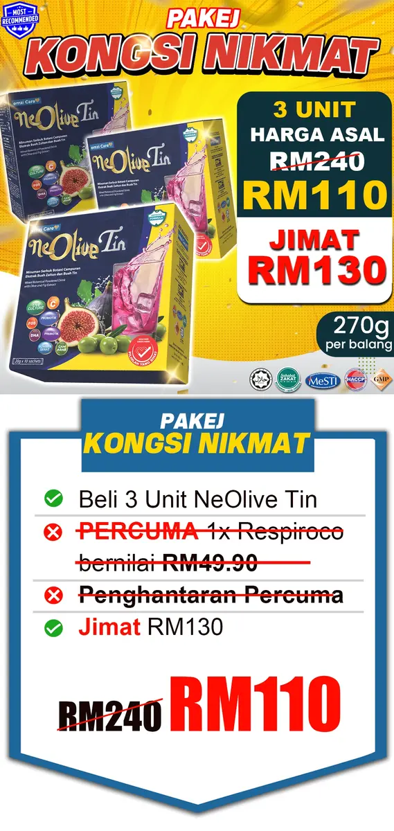 “Alhamdulillah olive tin dah sampai dlm keadaan baik.. Setiap bulan akan repeat order olive tin ni Sblm ni suami je yg minum sbb ada anxiety Alhamdulillah berkesan sngt²"